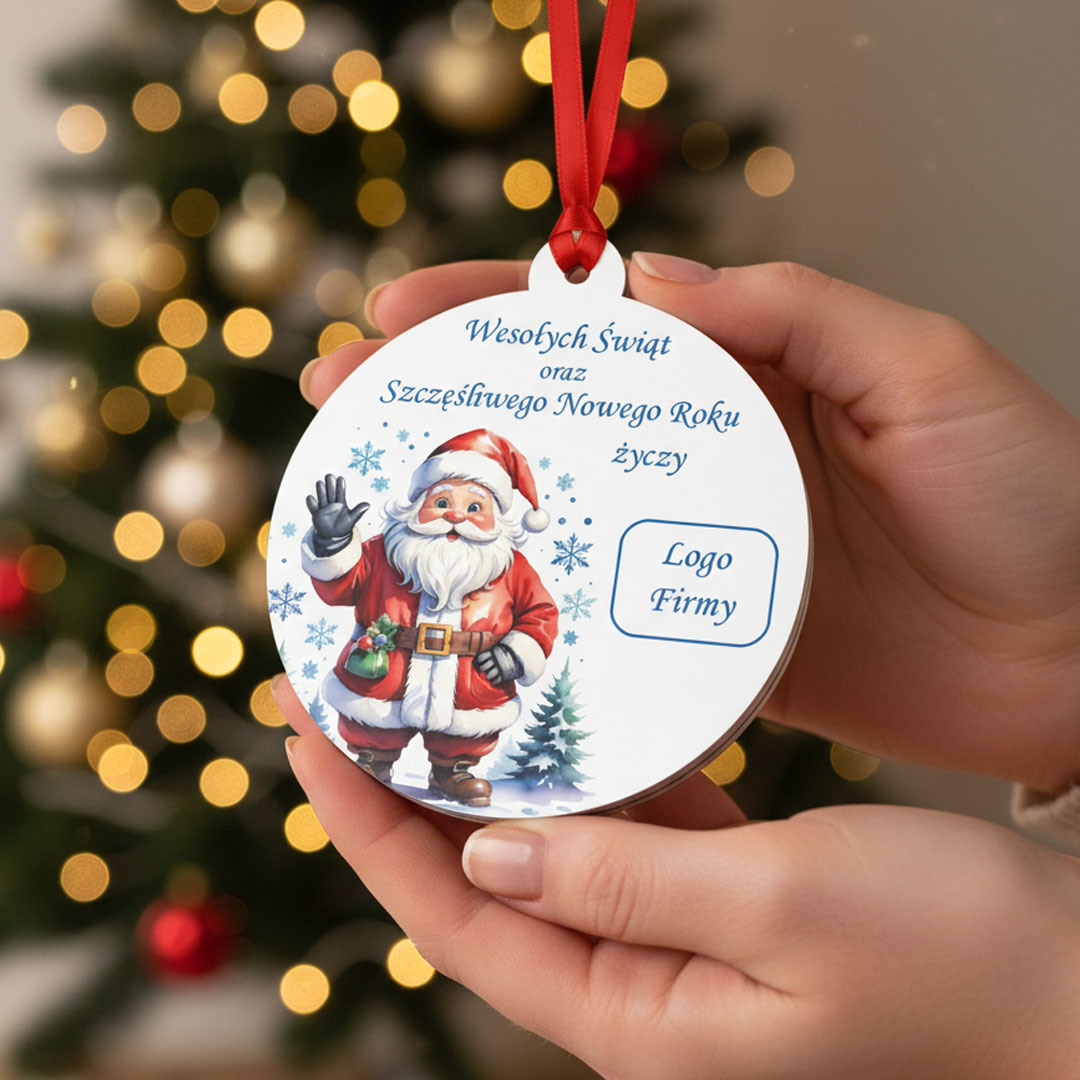 Bombka z logo firmy nazwą firmy Prezent na mikołajki firmowe na święta