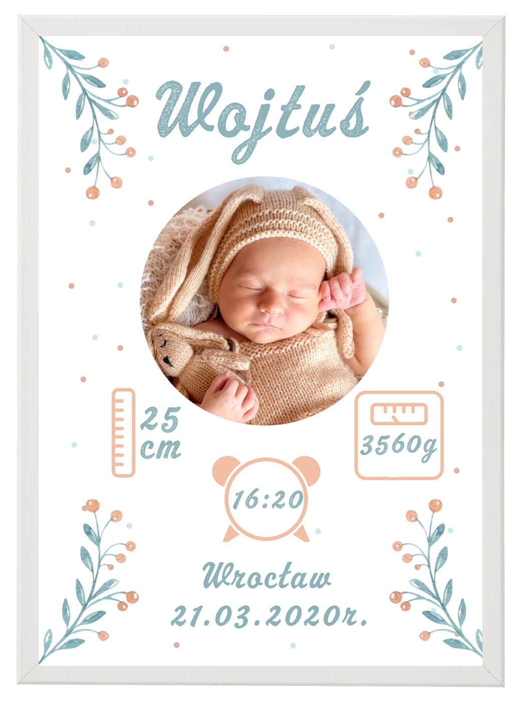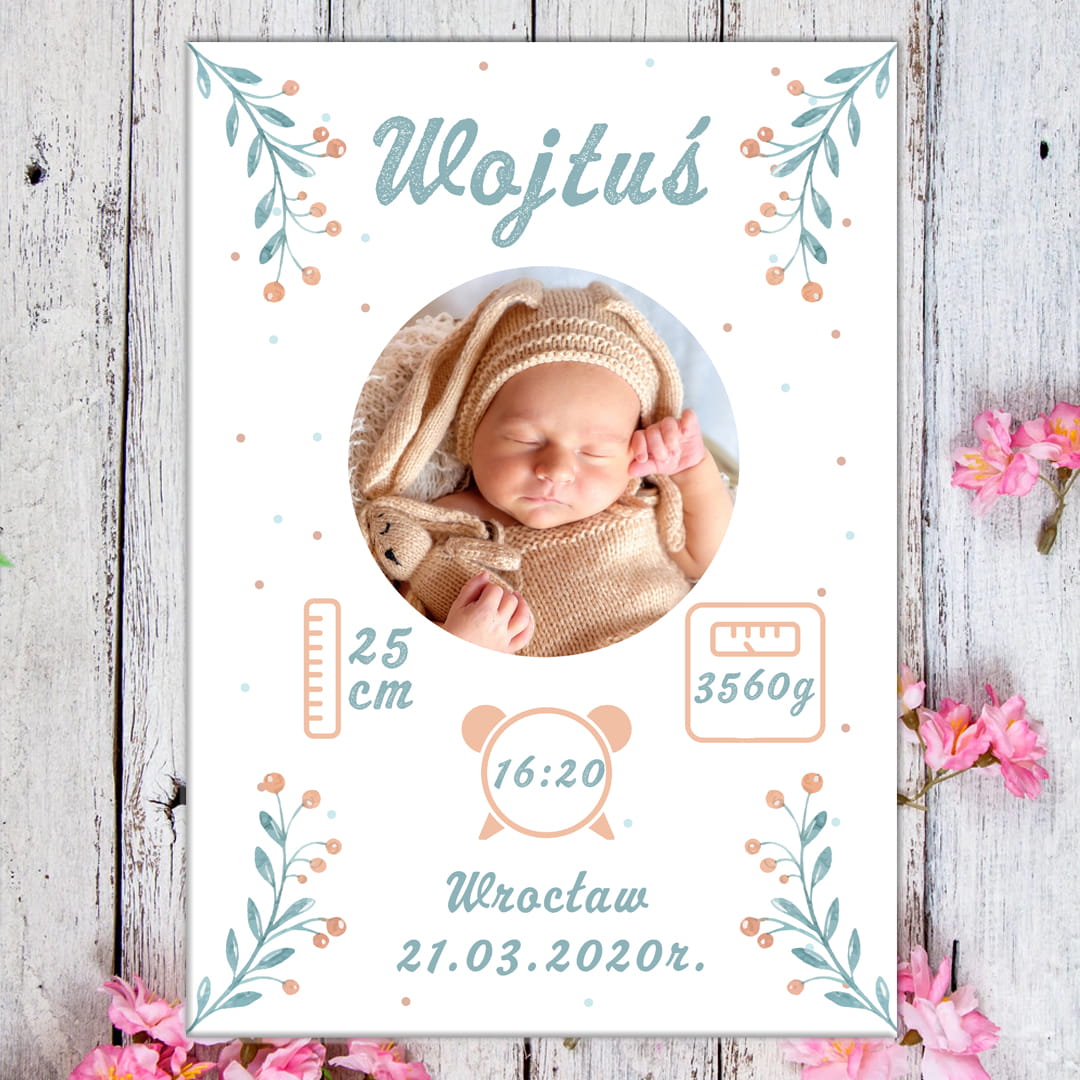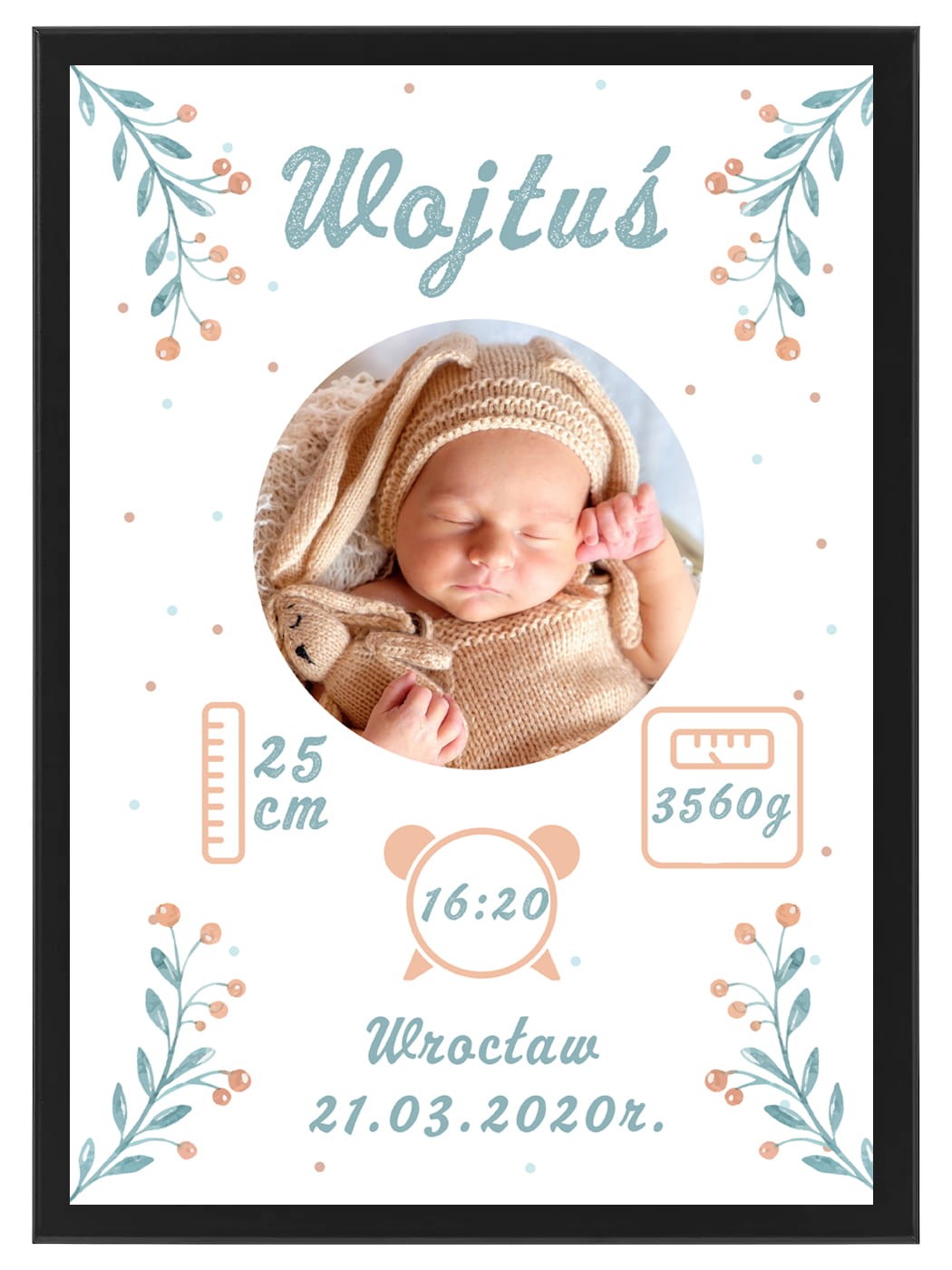 Metryczka ze zdjęciem to doskonały prezent z okazji narodzin lub chrztu dziecka. To wspaniała pamiątka i dekoracja w jednym.