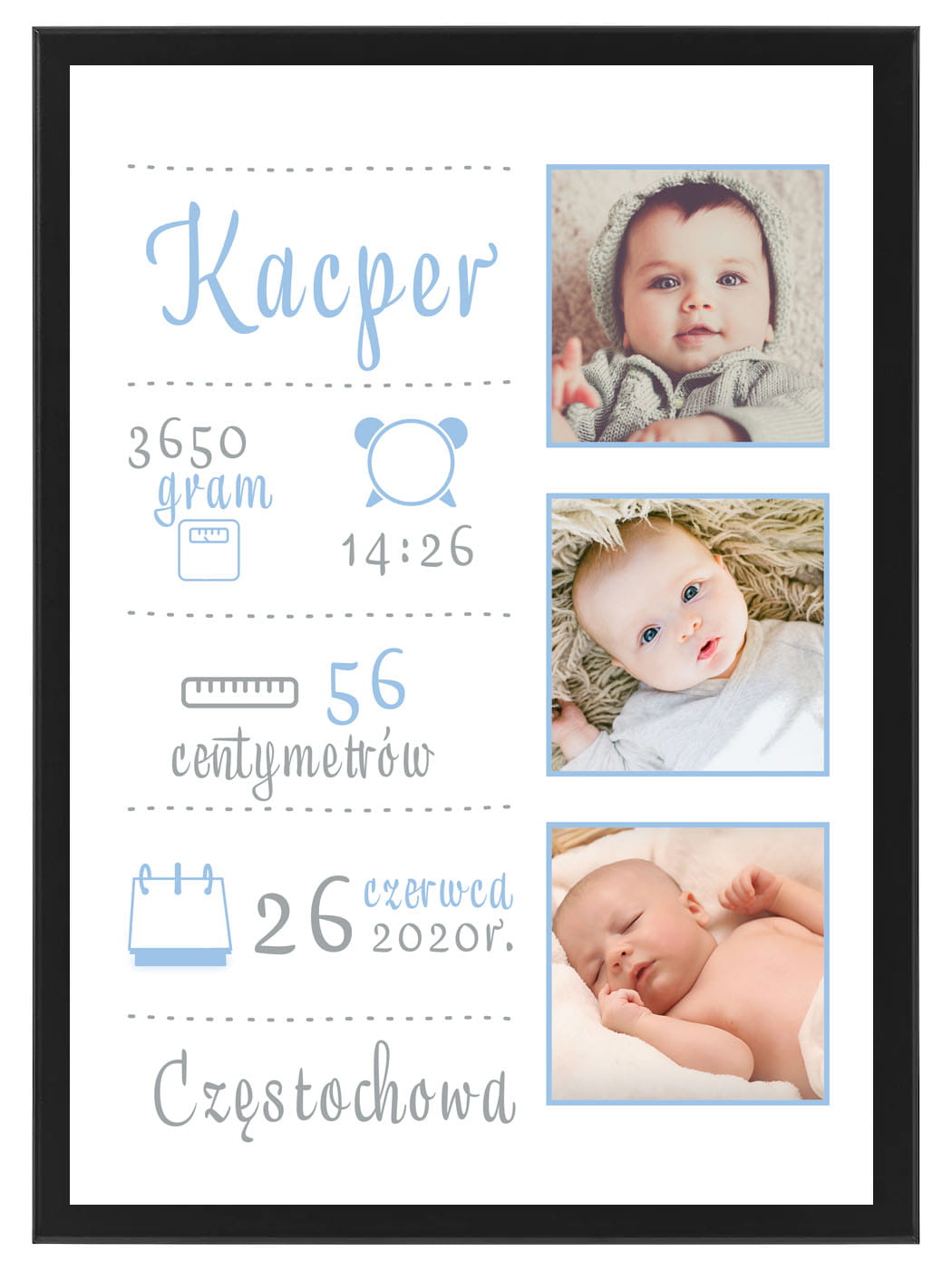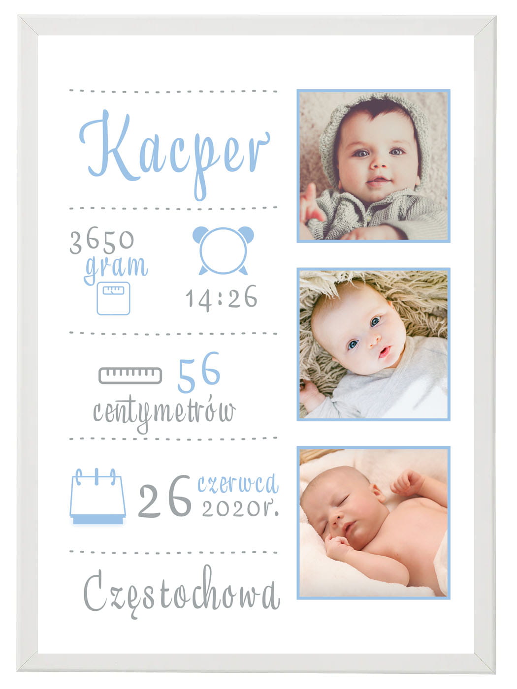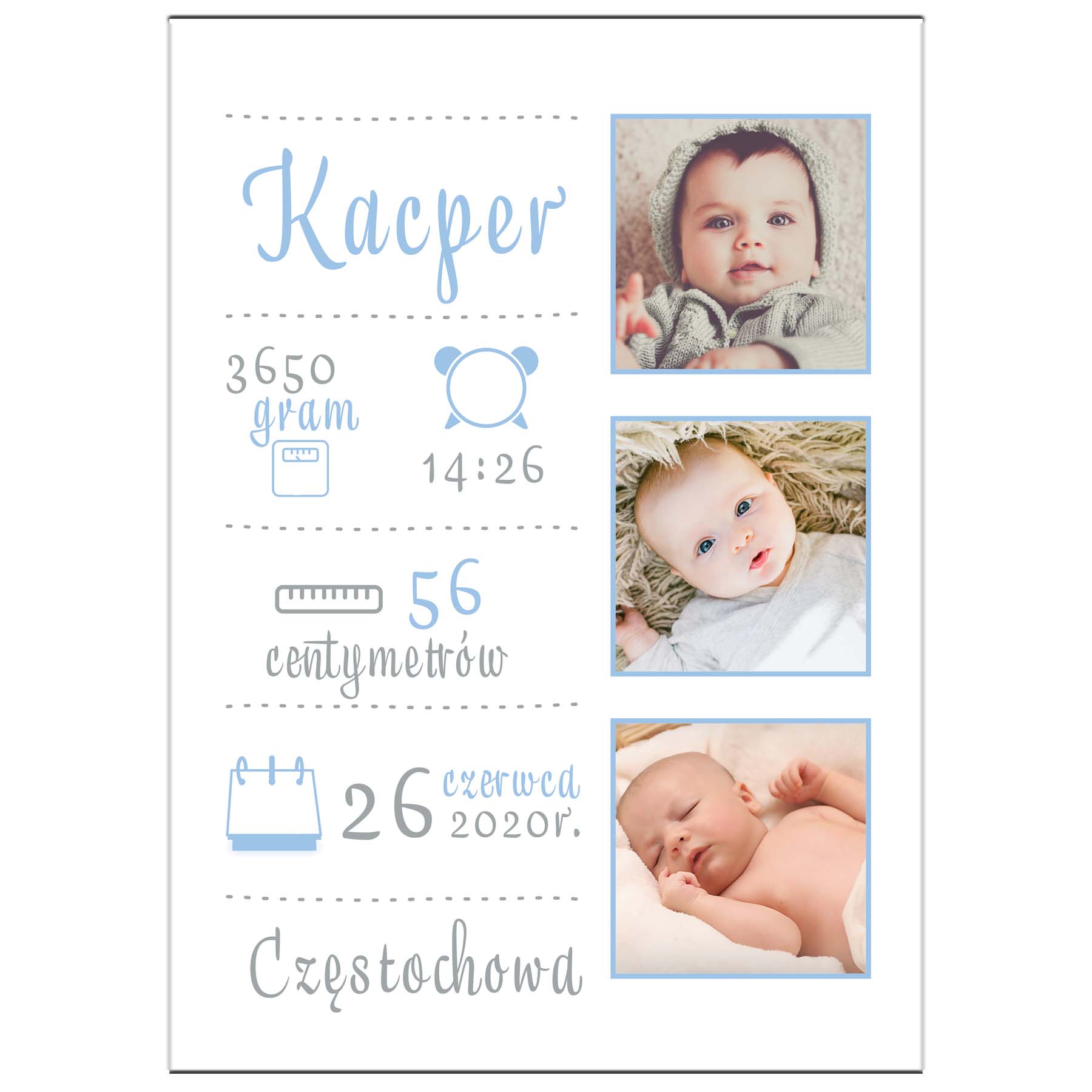 Metryczka ze zdjęciem dla dziecka - 3 zdjęcia błękitne