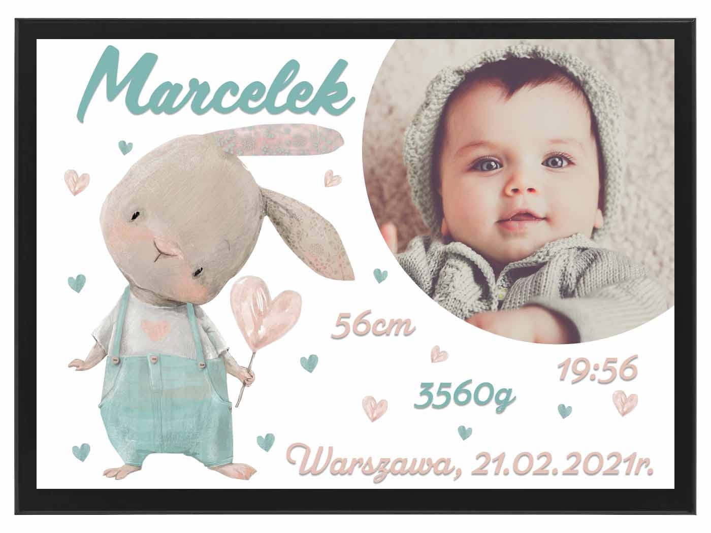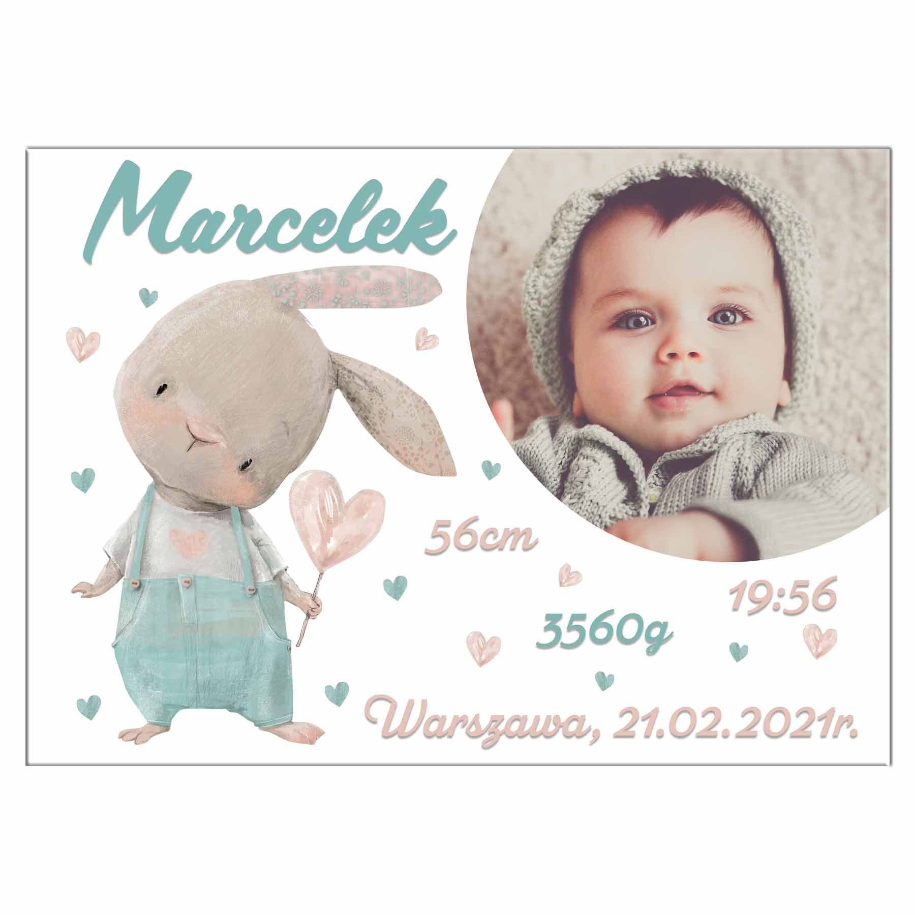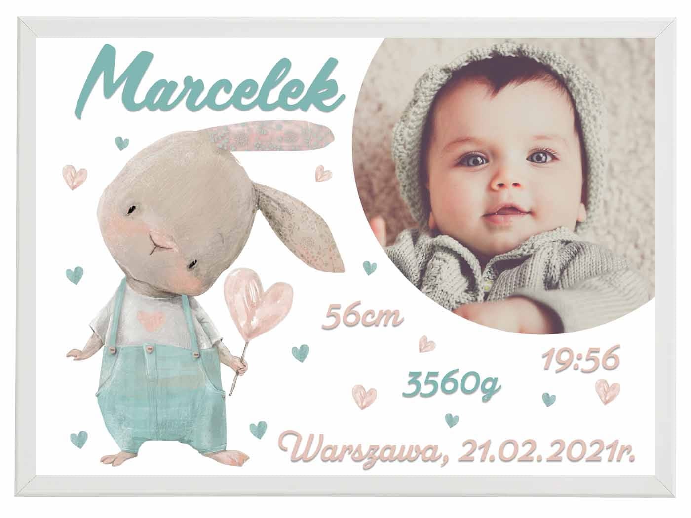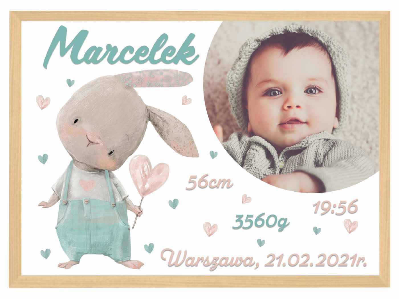 Metryczka ze zdjęciem - pastelowy Kacperek