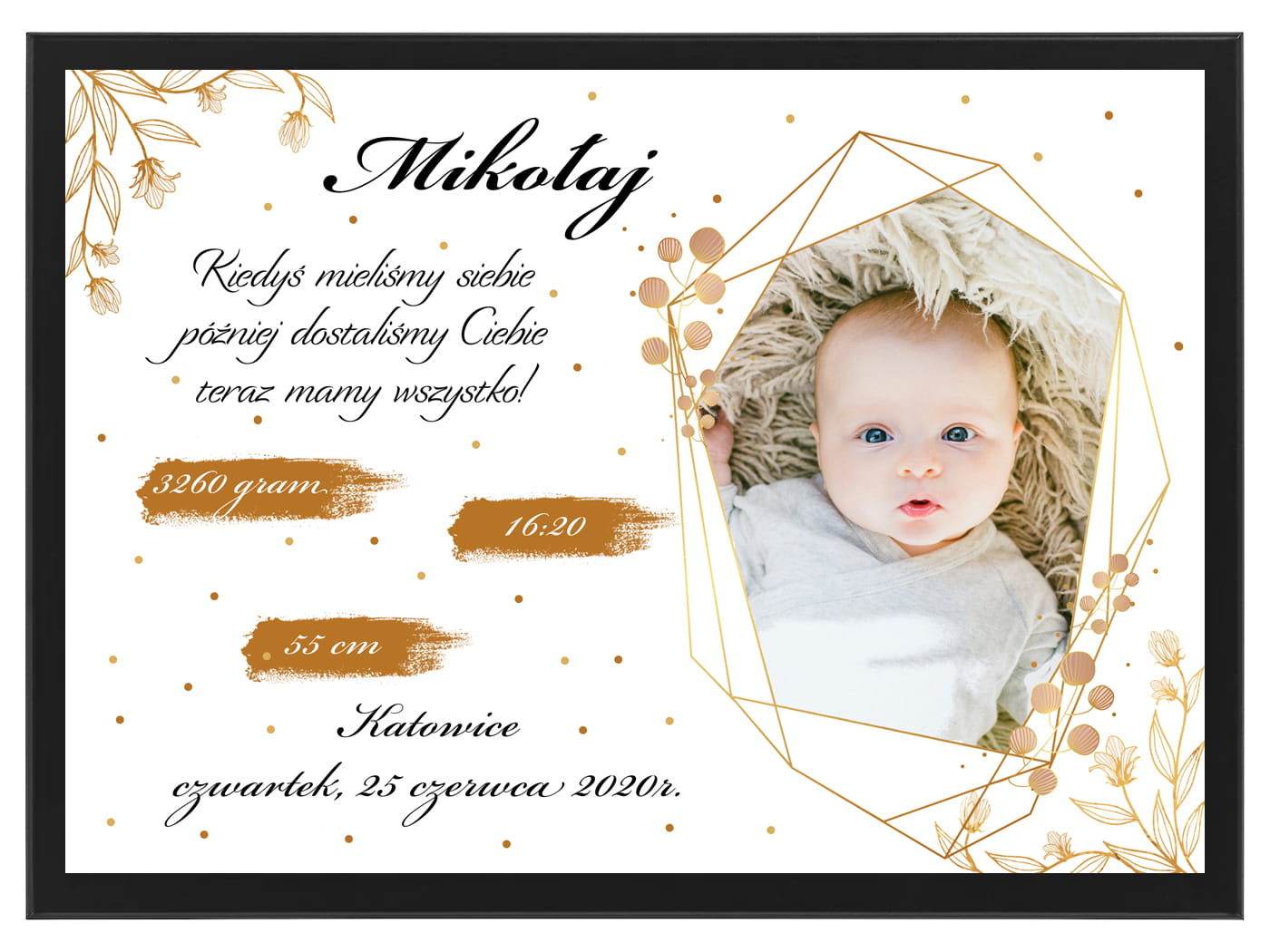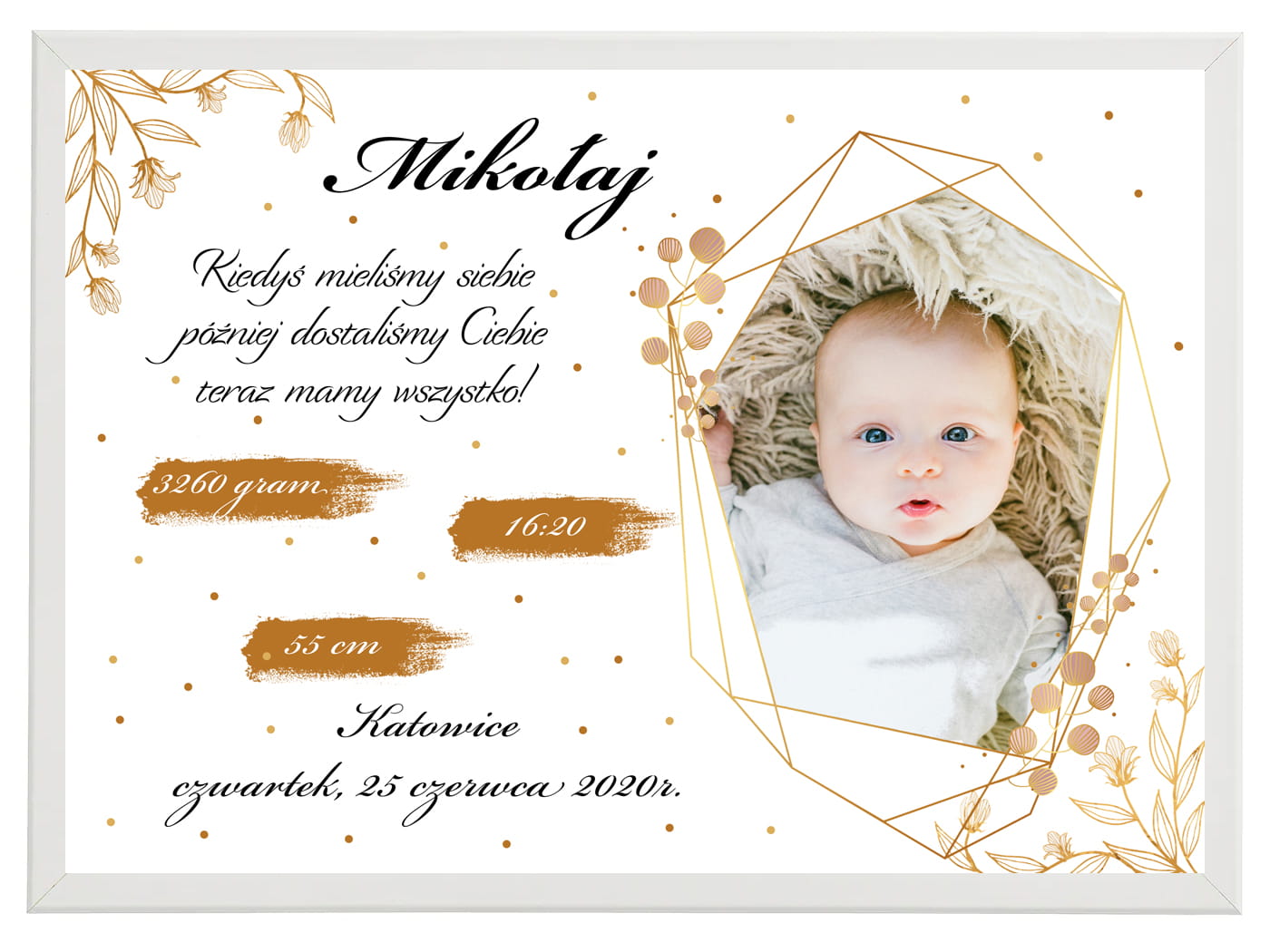 Metryczka ze zdjęciem to doskonały prezent z okazji narodzin lub chrztu dziecka. To wspaniała pamiątka i dekoracja w jednym.
