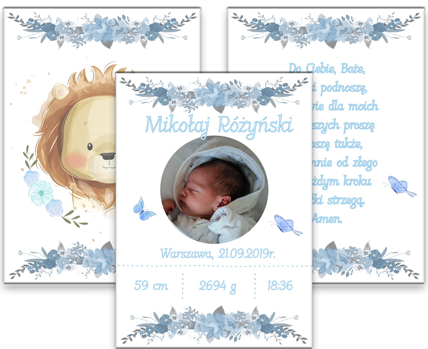 Metryczka ze zdjęciem - zestaw niebieski