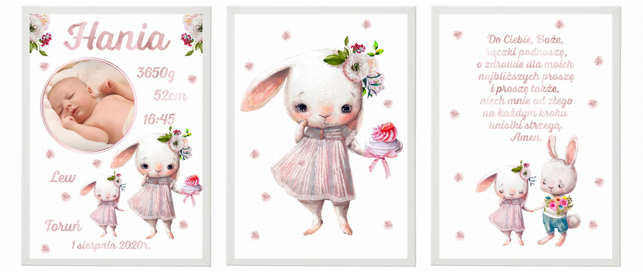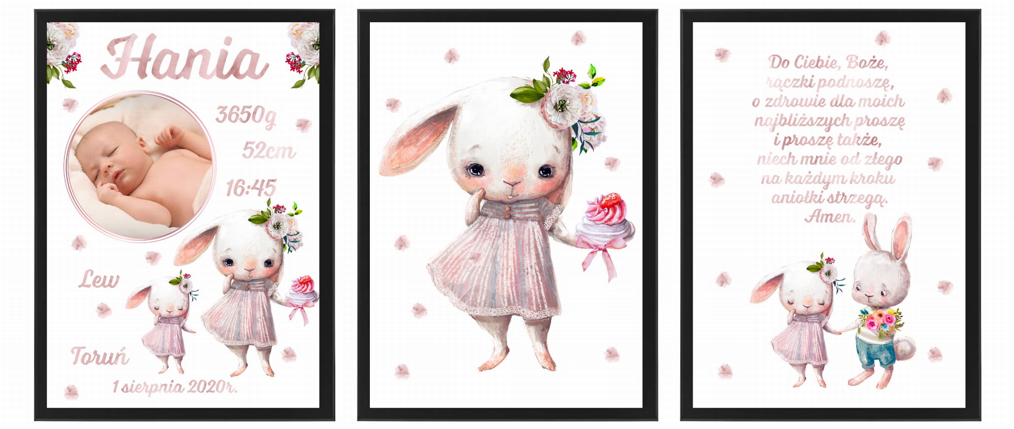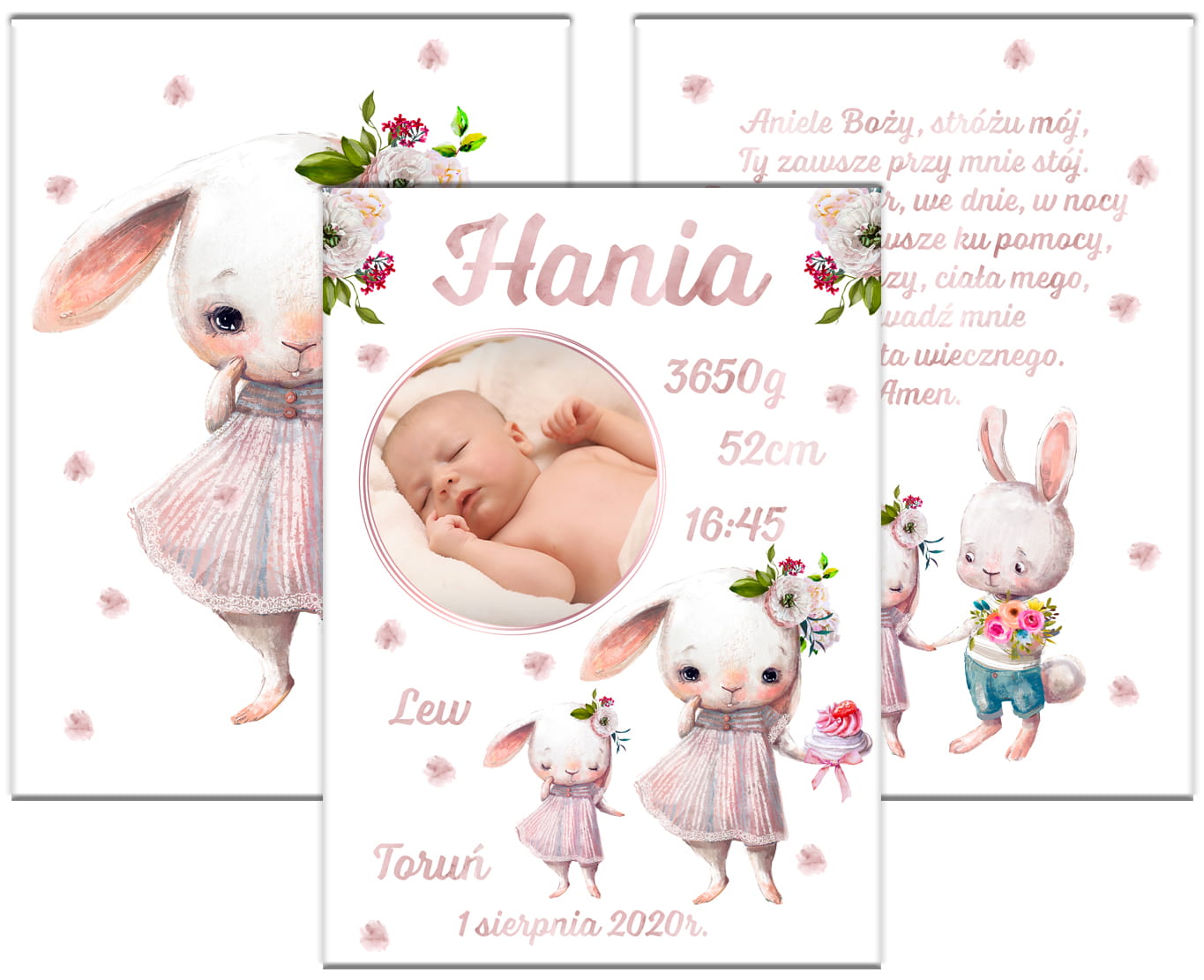 Metryczka ze zdjęciem - zestaw pastelowa Hania