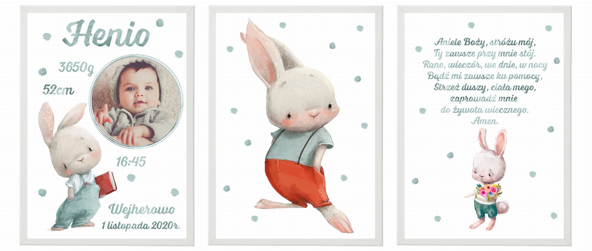 Metryczka ze zdjęciem - zestaw pastelowy Henio