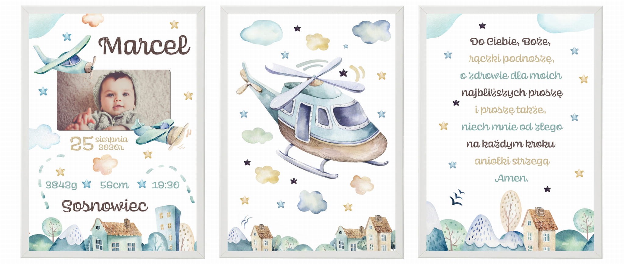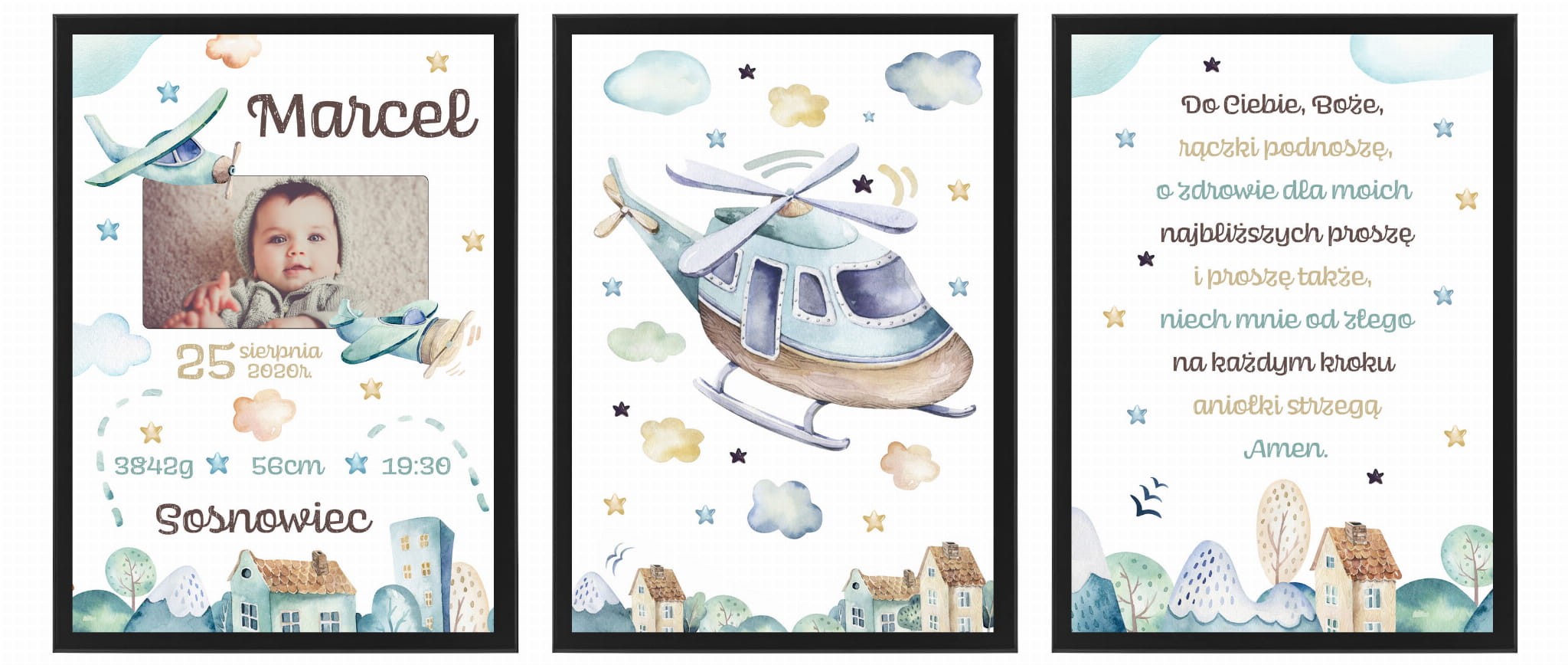 Zapraszamy do wyboru imiennej metryczki w formacie A4 (21x29,7cm) lub A3(30x40cm) w ramce do wyboru (ramki z ochronna plexi, zabezpieczone folią). Plakat drukowany jest na profesjonalnym papierze fotograficznym oraz oprawiony od razu w ramkę. Informację zawarte na wzorach są przykładowe i można je dowolnie modyfikować - usługa jest bezpłatna!