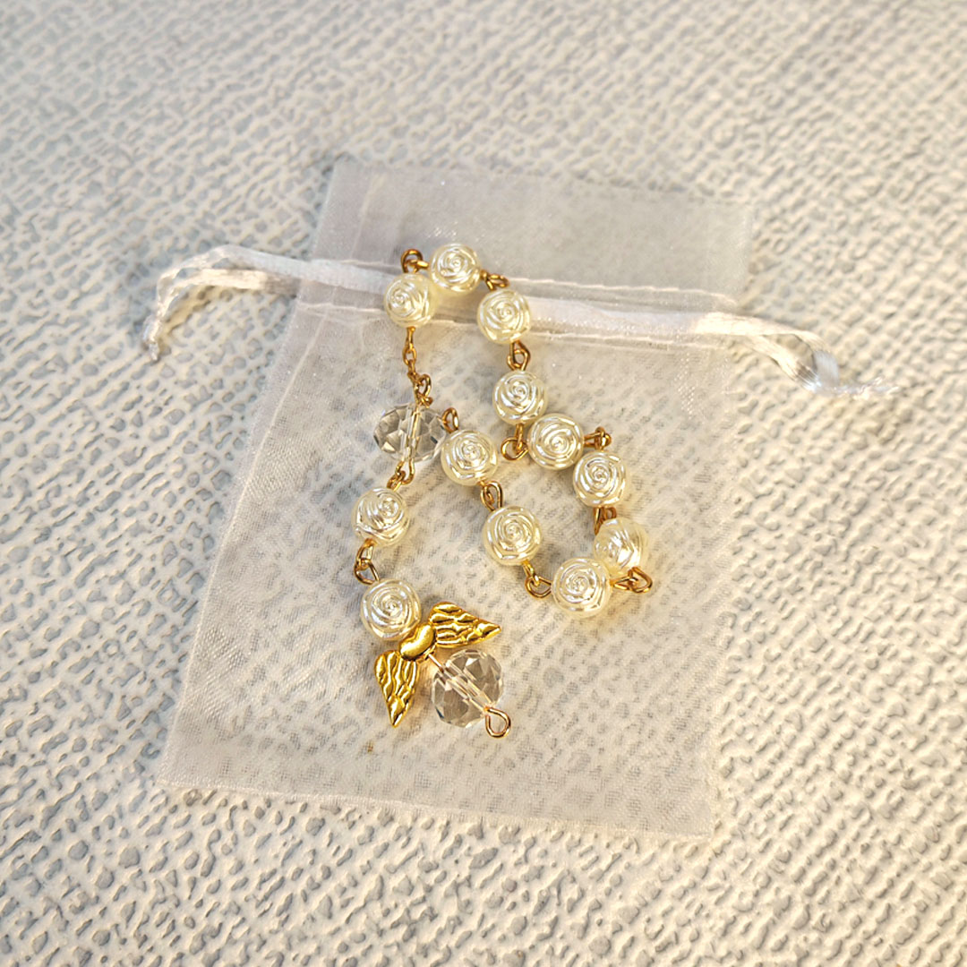 - W wyposażenie pudełka wchodzi dziesiątka różańca umieszczona w woreczki z organzy