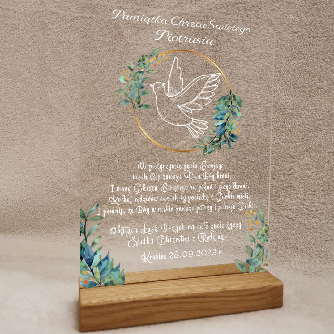 Pamiątka Chrztu Świętego Prezent na chrzest na szkle akrylowym zieleń