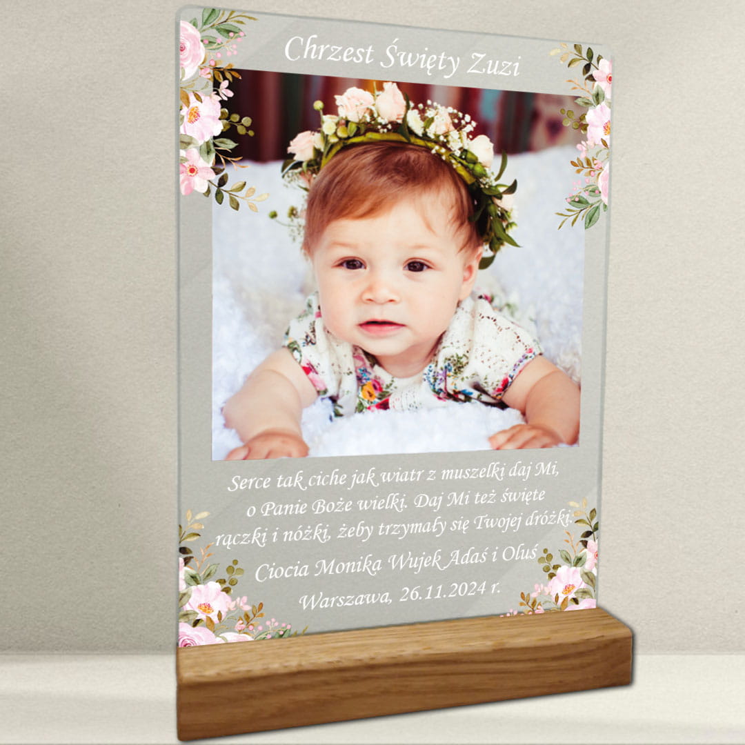 Pamiątka Chrztu Świętego Prezent na chrzest zdjęcie na szkle akrylowym