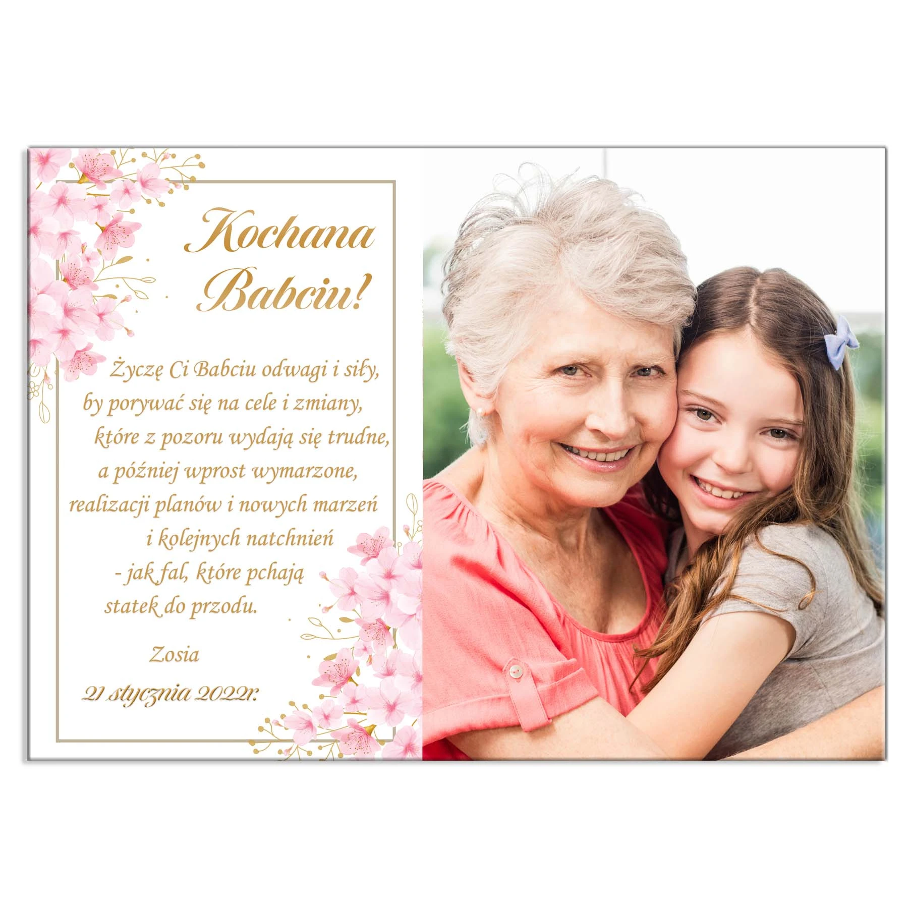 Piękny personalizowany prezent dla Babci i Dziadka z okazji ich wyjątkowego święta. Zaskocz swoich najbliższych cudownym upominkiem. Wszyscy mamy mnóstwo zdjęć w swoich telefonach, a coraz rzadziej przenosimy je na papier. My oferujemy Państwo pamiątkę ze zdjęciem z okazji dnia babci i dziadka w formie plakatu. Gwarantujemy, że łezka w oku Waszych najbliższych pojawi się ze wzruszenia.