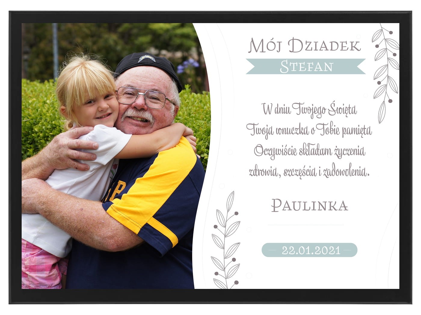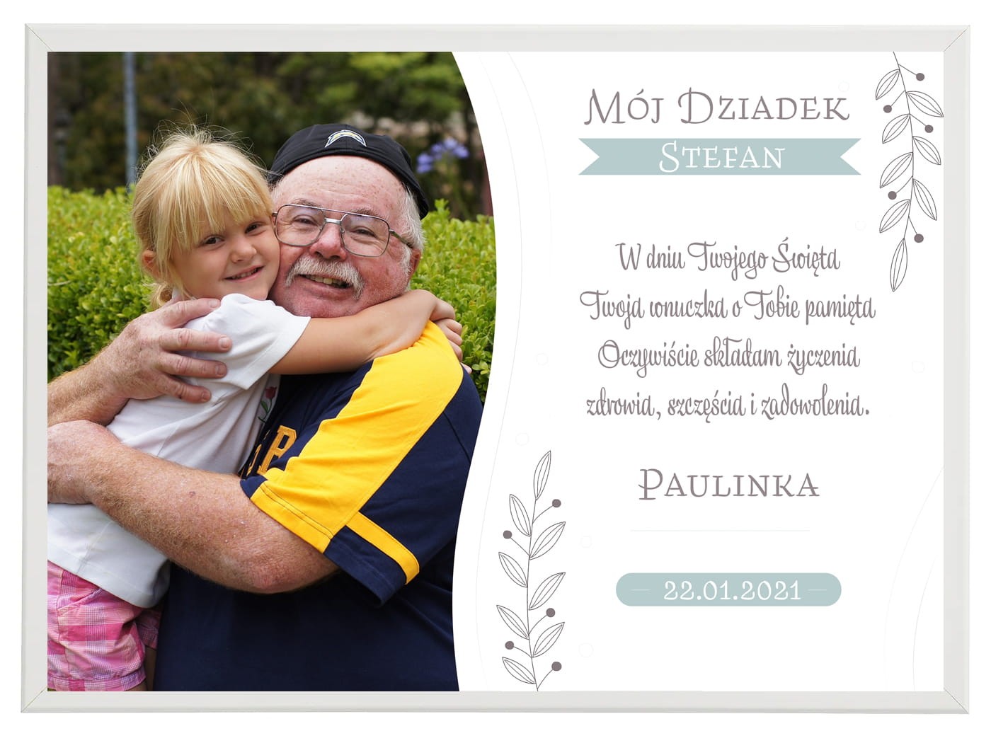 Piękny personalizowany prezent dla Babci i Dziadka z okazji ich wyjątkowego święta. Zaskocz swoich najbliższych cudownym upominkiem. Wszyscy mamy mnóstwo zdjęć w swoich telefonach, a coraz rzadziej przenosimy je na papier. My oferujemy Państwo pamiątkę ze zdjęciem z okazji dnia babci i dziadka w formie plakatu. Gwarantujemy, że łezka w oku Waszych najbliższych pojawi się ze wzruszenia.