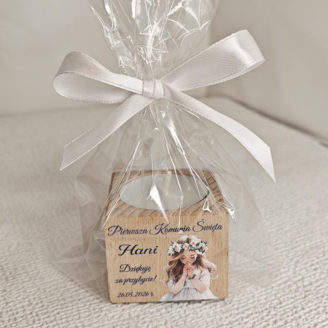 ✅ Symboliczny i elegancki upominek – starannie wykonany świecznik z drewna naturalnego na długo zachowa piękne wspomnienia z uroczystości Chrztu Świętego.