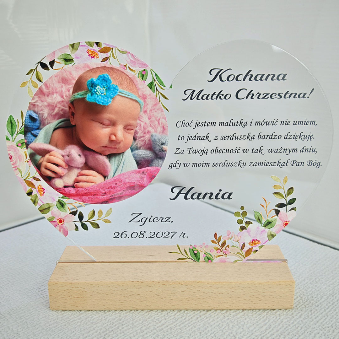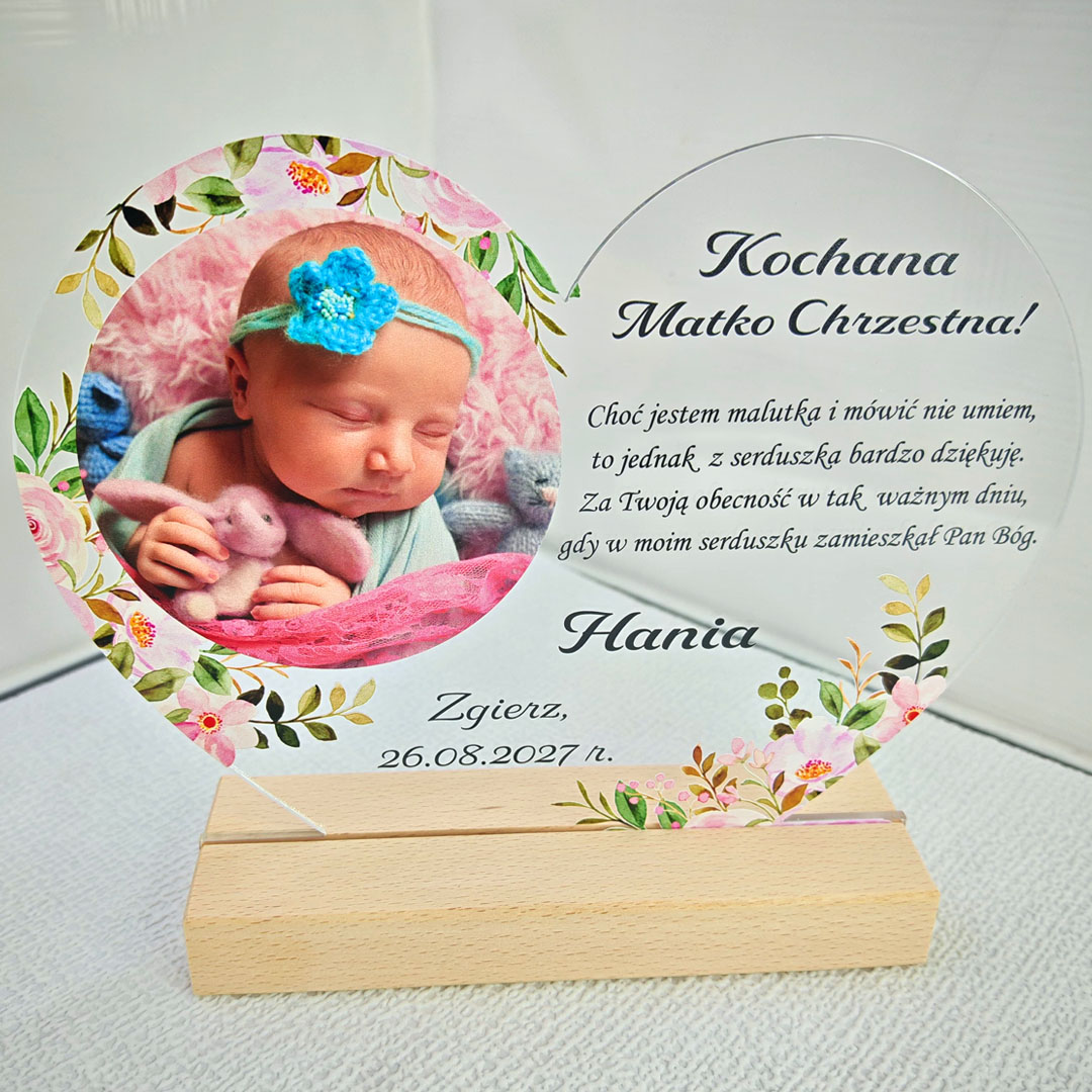 Niech to podziękowanie dla Rodziców Chrzestnych z udziałem zdjęcia Twojego dziecka na szkle akrylowym będzie wyrazem głębokiej wdzięczności i miłości, która towarzyszy w tych wyjątkowych momentach życia.