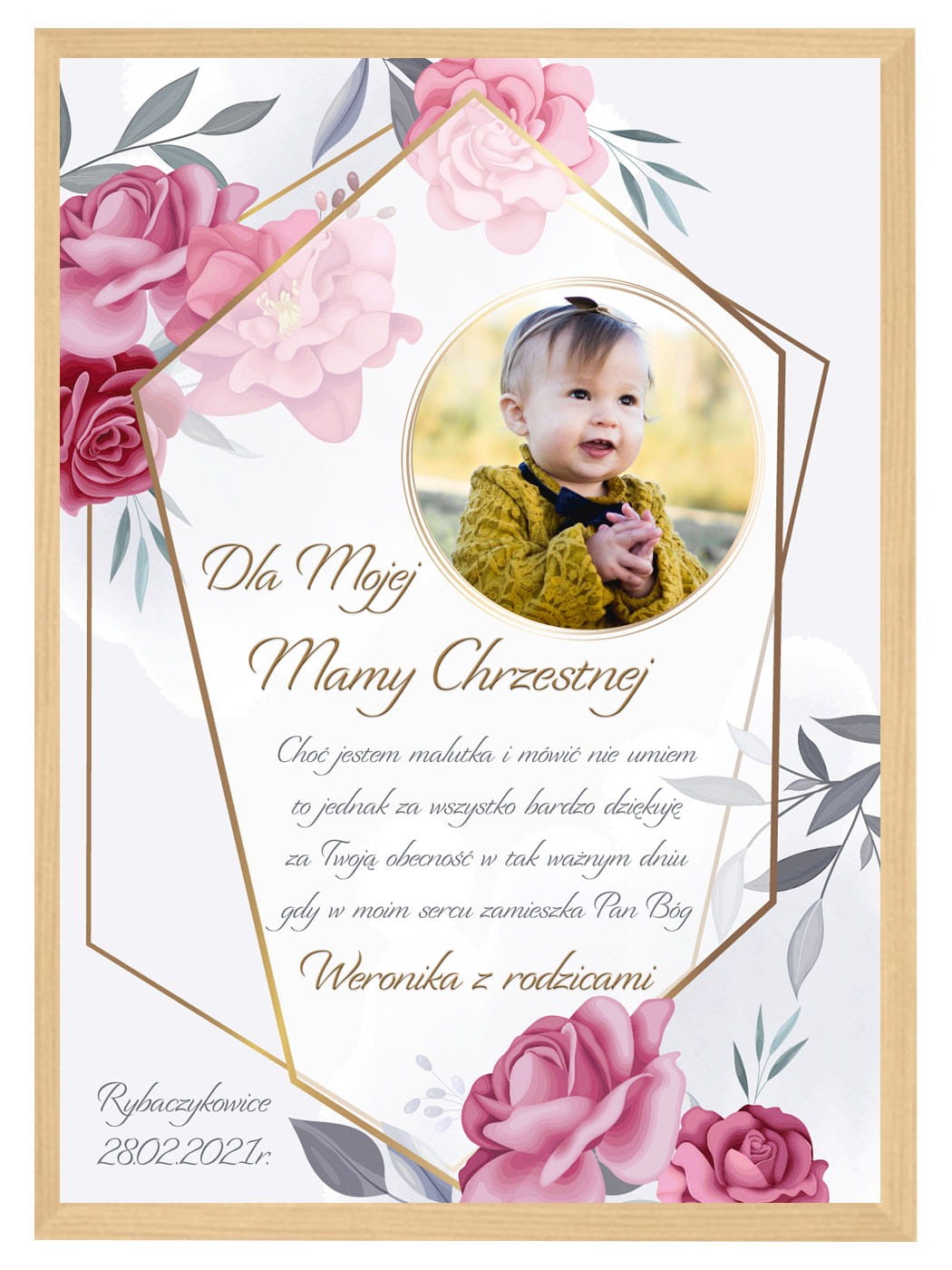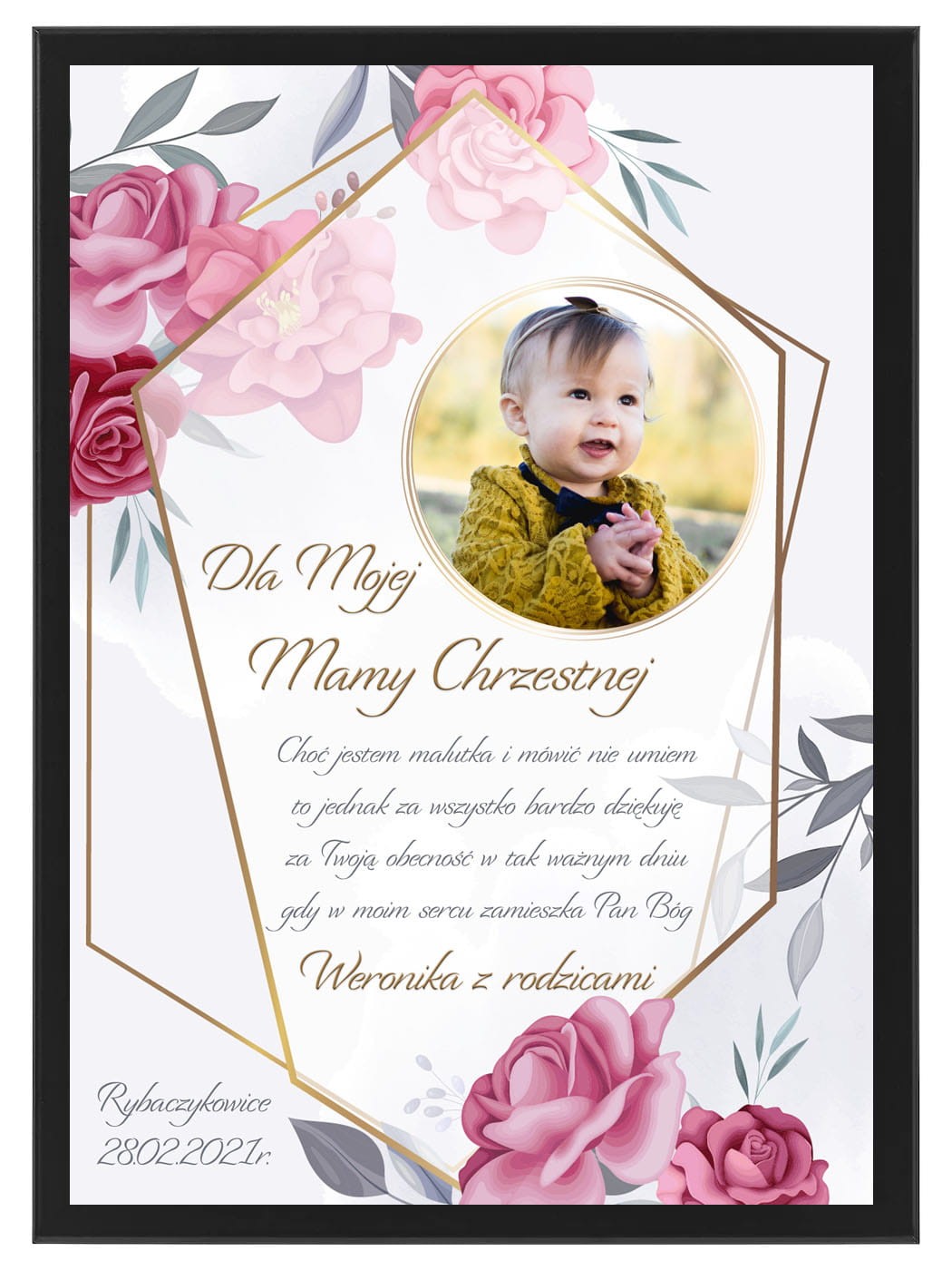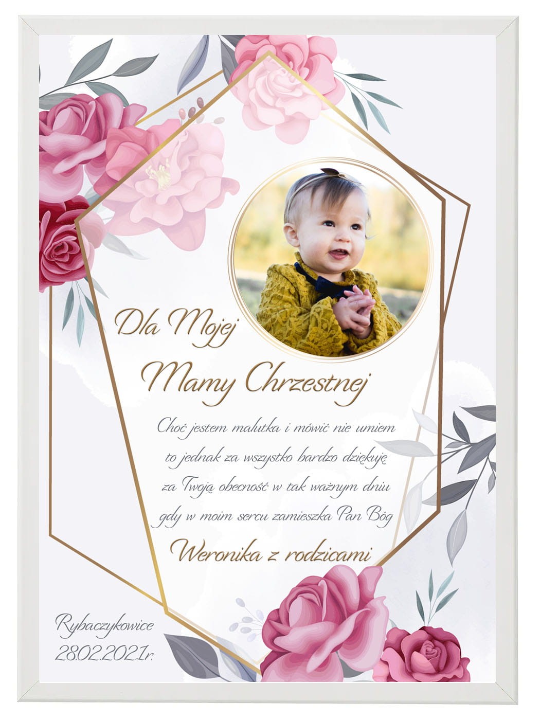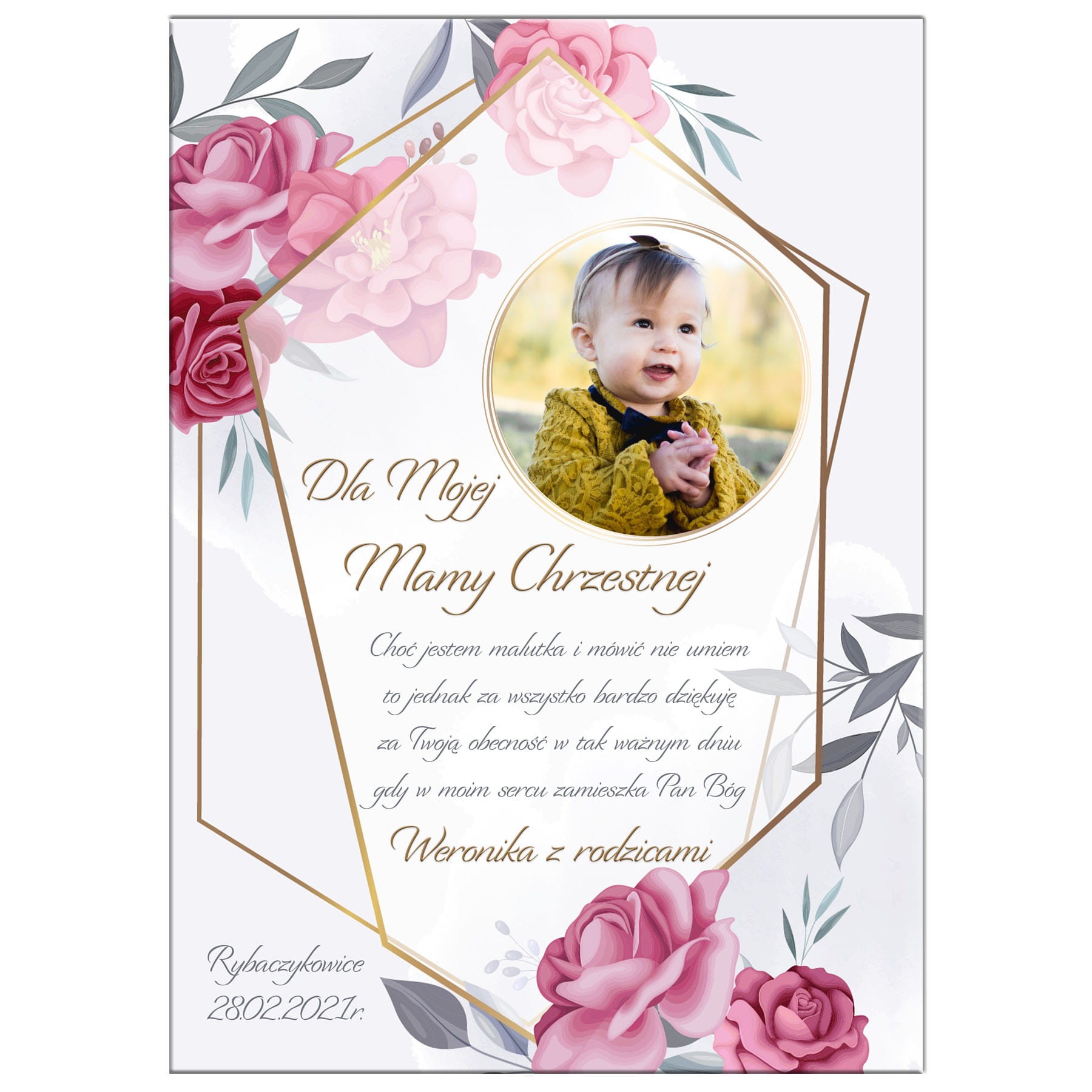 - pełna personalizacja - zdjęcie dziecka, imię dziecka, imiona rodziców chrzestnych / dziadków